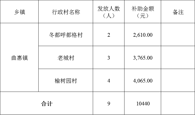 和硕县曲惠镇12月年满60岁农村籍退役士兵生活补助金发放信息表