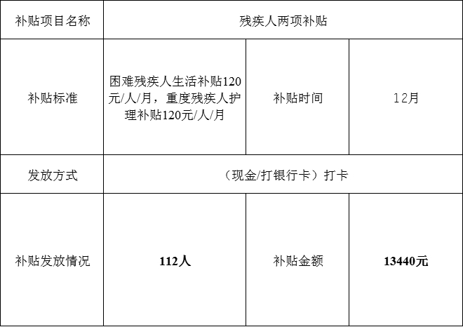 曲惠镇12月份残疾人两项补贴发放公示表