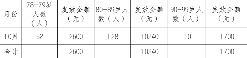 乌什塔拉乡2025年10月份高龄补贴发放统计表