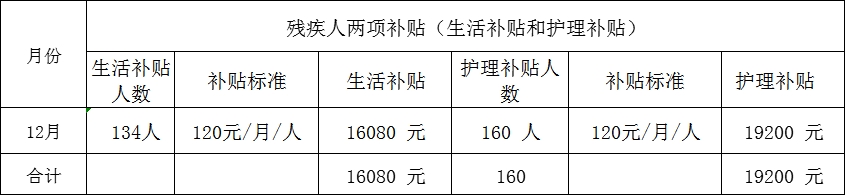 乌什塔拉乡2025年12月残疾人两项补贴(生活补贴和重残护理补贴)发放明细表