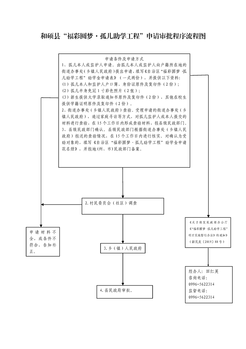 和硕县“福彩圆梦·孤儿助学工程”申请审批程序流程图