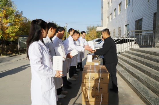 和硕县卫健委党组书记、副主任孟庆疆说:“今天我们医疗系统举行慰问品发放仪式,就是传达中央代表团为我们送来的问候,我们医疗系统一定要把这些设备用好,服务群众。”