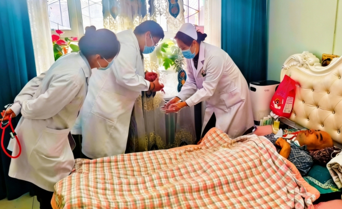 和硕县特吾里克镇中心卫生院院长杨建芳说:“家庭医生签约服务是我院深化医疗卫生服务,推动医疗资源下沉的重要举措。针对辖区内的老年人、慢性病患者、残疾人以及像这位患者一样的长期卧床特殊人群,我们建立了详细的健康档案,并提供优先预约、上门访视、家庭病床等一系列个性化服务。”