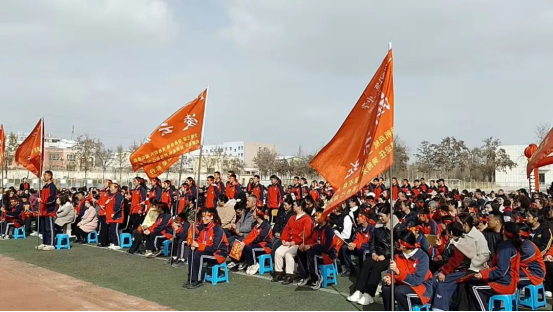 3月14日,和硕县第二中学隆重举行“燃梦百日·决胜中考”中考百日誓师大会,全体初三师生及家长代表齐聚一堂,共同见证这一庄严时刻,携手开启中考冲刺的新征程。