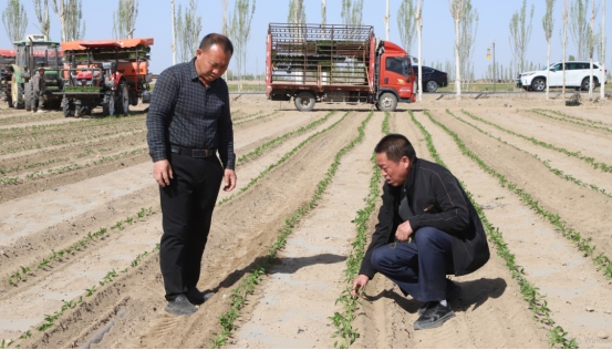 和硕县曲惠镇榆树园村种植户陈勇均说:“今天农业技术员来我们农田指导施肥、铺膜、栽苗及管理问题,我们学到了很多农业知识,后期会严格按照技术要求,做好管理,争取有个好收成。”