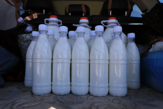 凭借自家牧场地处戈壁滩的优越环境,朗才一家积极投身骆驼养殖事业,经过多年的发展,他们家已成为县里知名的骆驼养殖大户。每到春季产羔时节,她家的鲜驼奶总是供不应求。“骆驼奶营养丰富,能增强免疫力。每天还没开始挤奶,就被周边的客户预订了,也有很多外县的人喜欢我家的驼奶。我会把骆驼养好,靠养殖让日子越过越红火。”谈到养殖增收,朗才对未来充满信心。