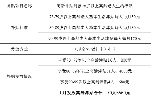 曲惠镇2026年1月高龄津贴发放公示表