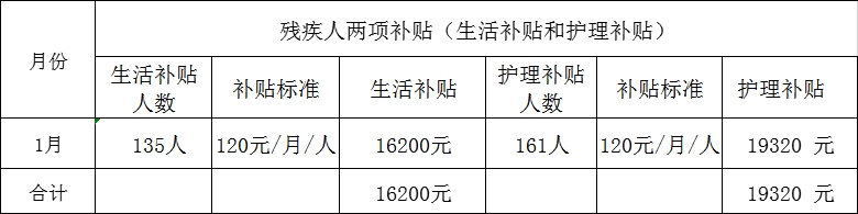 乌什塔拉乡2026年1月残疾人两项补贴(生活补贴和重残护理补贴)发放明细表