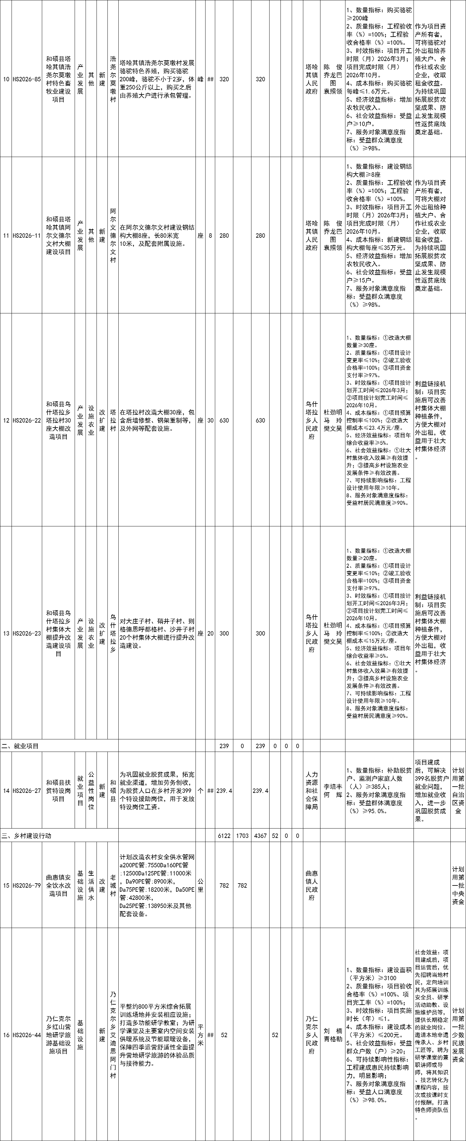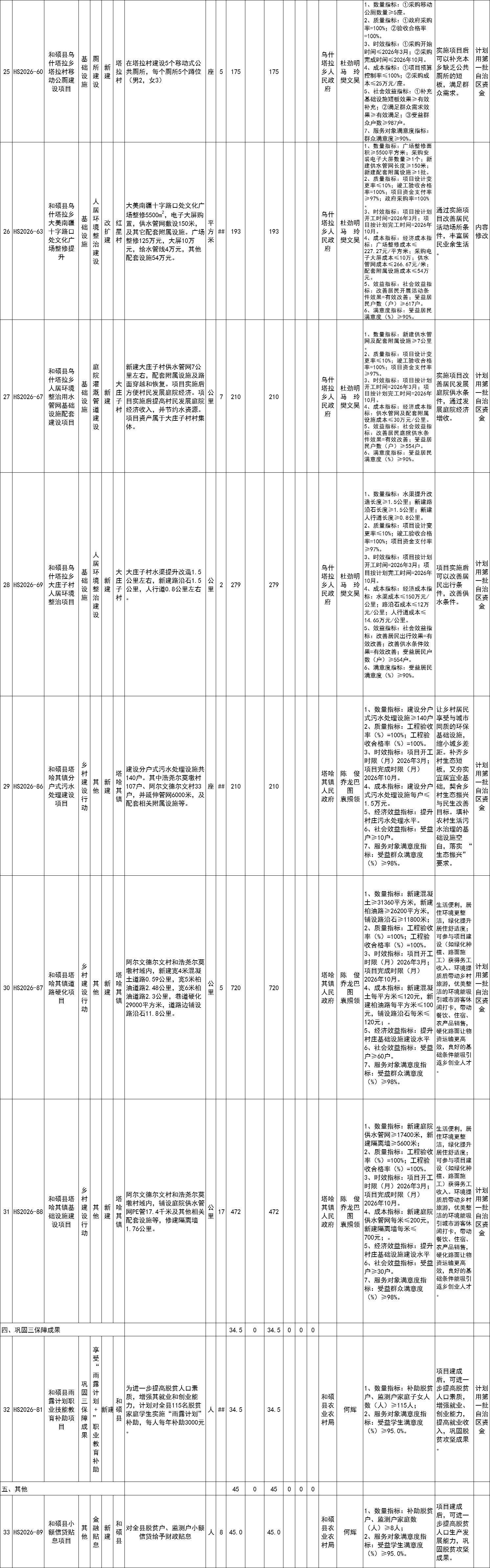 和硕县2026年巩固拓展脱贫攻坚成果和乡村振兴项目计划库