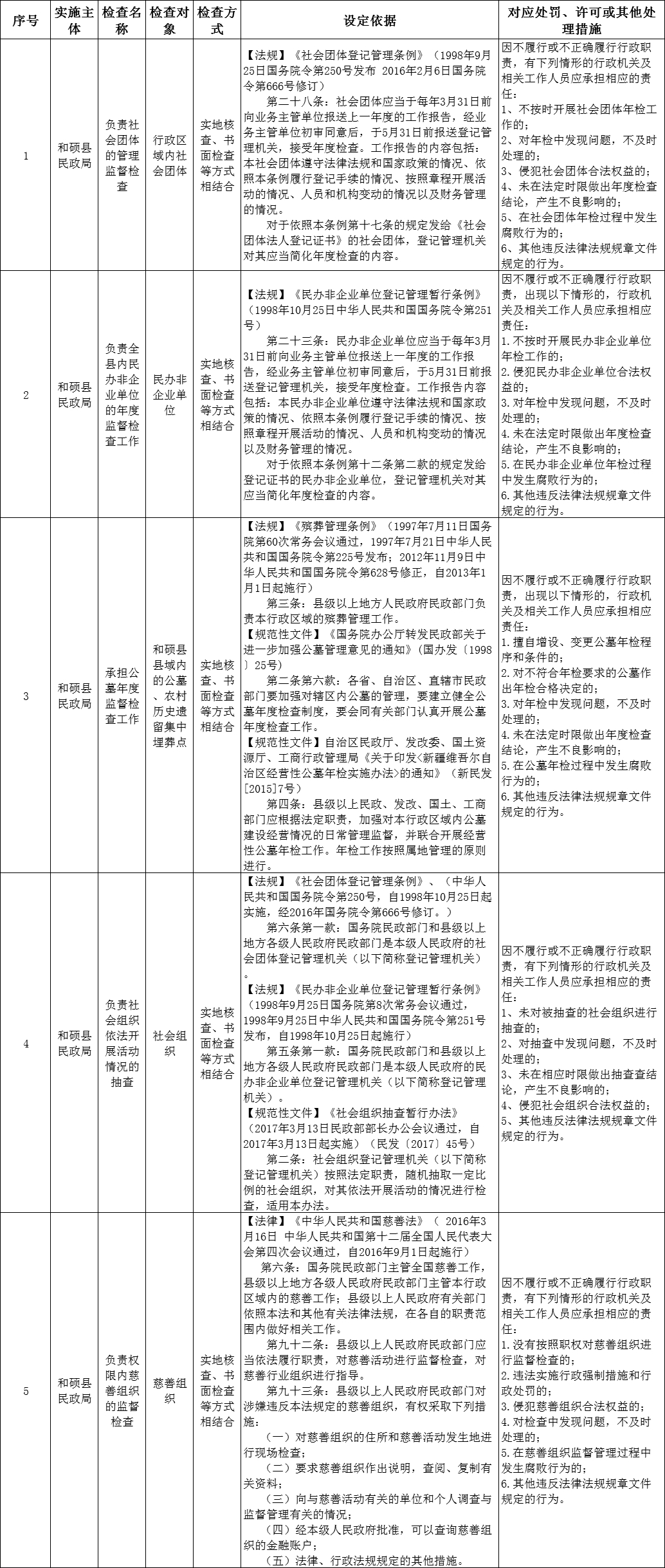 和硕县民政局行政执法部门涉企行政检查事项清单(2026版)