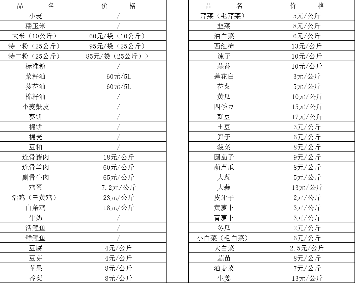 和硕县乌什塔拉乡大庄子2025年12月23日主要农产品市场价格行情