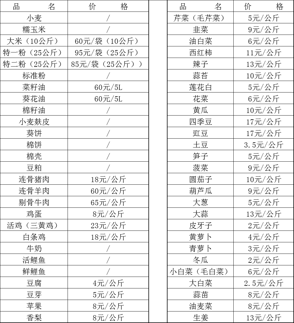 和硕县乌什塔拉乡大庄子2025年1月30日主要农产品市场价格行情
