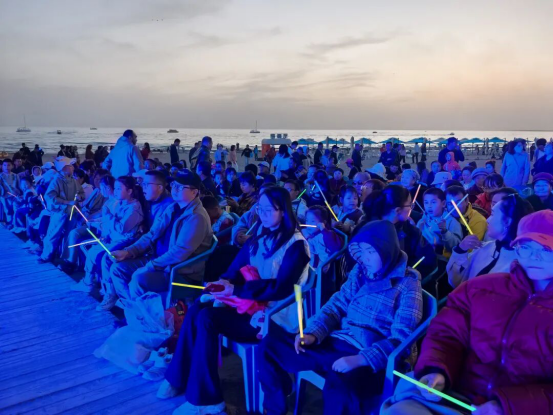 夜幕下,广场景观灯与舞台灯光交相辉映,将现场氛围推向高潮。节目间隙,观众们热烈交流,分享着对节目的喜爱与感受。