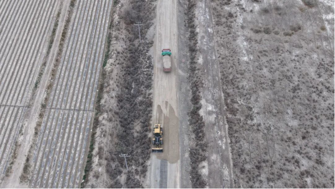 和硕县新塔热乡布茨恩查干村居民革命说:“以前会车得找宽点的地方倒半天,我们农机车拉运货物根本错不开,现在拓宽成双车道,以后出行、运货可太方便了。”