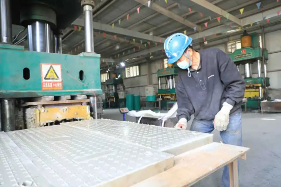 走进公司生产车间,机器轰鸣声此起彼伏,工人们身着统一工装在流水线前忙碌,切割、模压、组装、检测等工序有条不紊。在SMC模压生产区,经过精准配比的原料通过自动化设备压制成型,短短几分钟就能产出一块高强度井盖。相较于传统铸铁产品,公司研发的新型复合材料井盖不仅重量轻、安装便捷,更能抵御新疆复杂气候环境下的酸碱侵蚀和紫外线照射,使用寿命延长3倍以上且无金属析出,完全符合市政工程绿色环保要求。近两年凭借这些核心优势,公司产品已成功销往西北五省区,受到市场青睐。