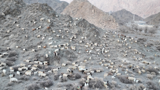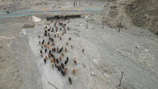 近日,记者在跟随牧民转场途中看到,在崎岖坎坷的牧道上,牧民有条不紊地驱赶着牛羊,浩浩荡荡的牛羊群延绵数百米,此起彼伏的牛羊叫声、牧民的吆喝声,回荡在整个山谷。